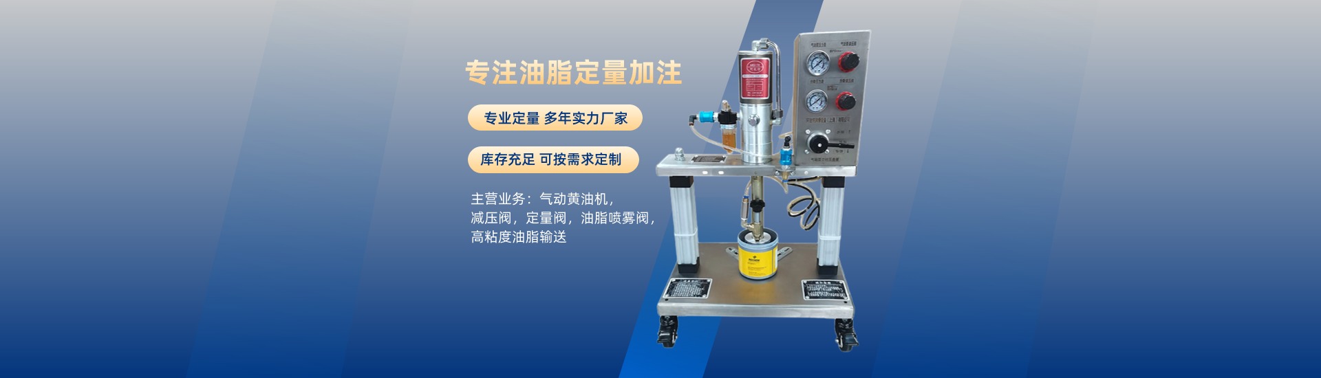 氣動不銹鋼雙立柱黃油機(jī),自動注油機(jī),油脂定量閥,油脂減壓閥,氣動黃油泵,氣動機(jī)油泵,機(jī)械設(shè)備及配件,氣動液壓設(shè)備及配件,氣動工具,機(jī)械設(shè)備安裝維修,非標(biāo)定制注油產(chǎn)品等